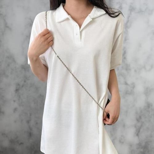 [다잇템][다잇템] 여자 반소매 쁘띠 박시핏 면혼방 카라넥 원피스_21262688_588872