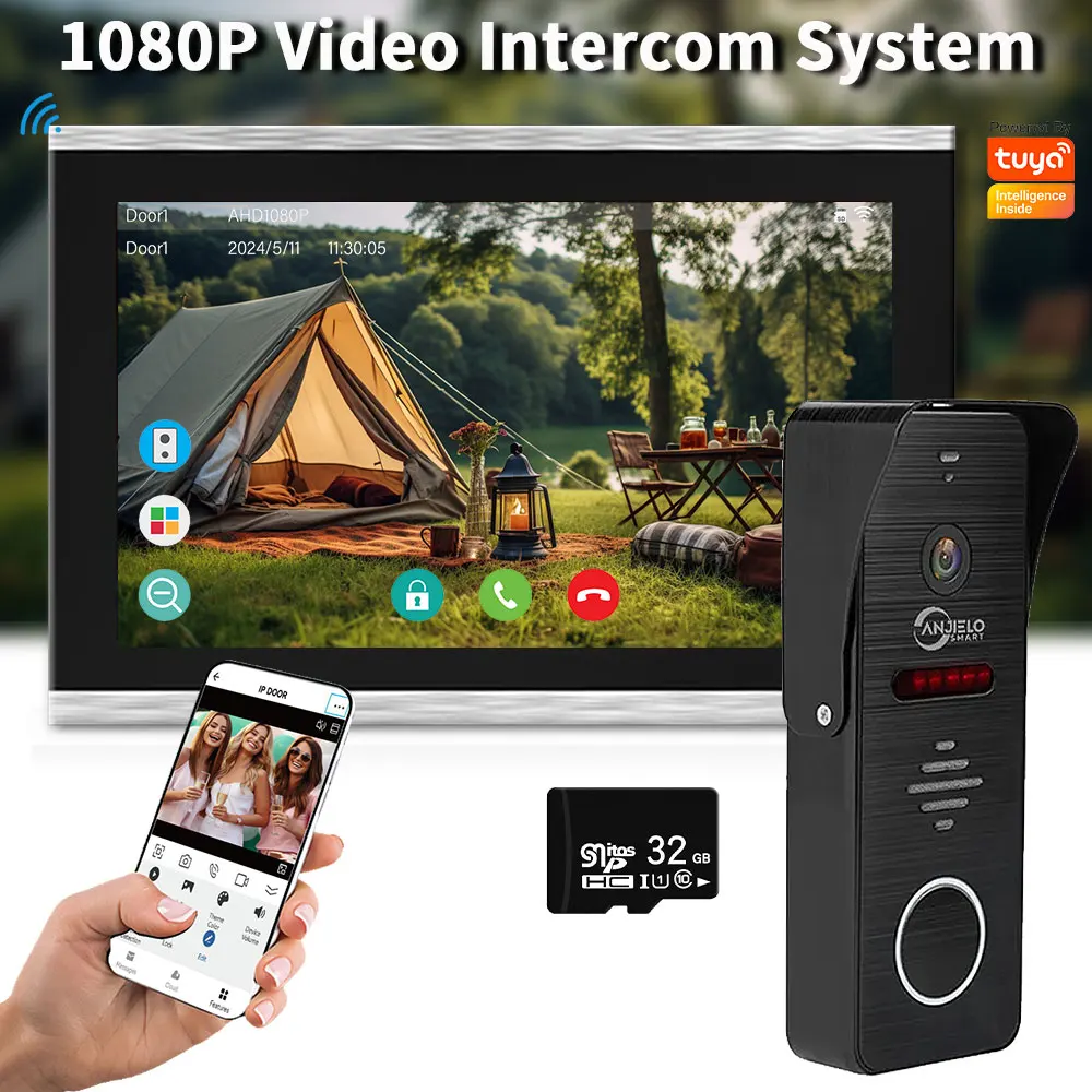 2 전선 스마트 홈 Tuya Wifi 1080P 비디오 인터콤 비디오 도어 폰 7 ''터치 모니터 비디오 초인종 도어 카메라 보안 시스템