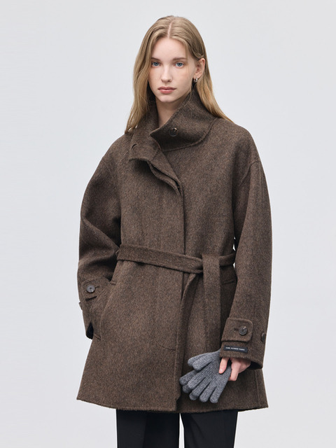 [히이크] 카멜 울 핸드메이드 하프 코트_오크 브라운