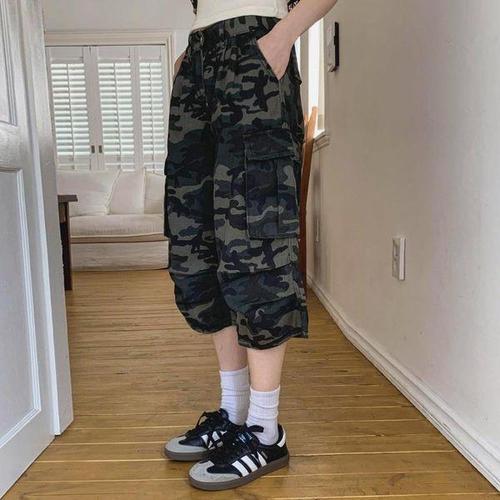 [신상오픈런]여자 힙무드 카모플라쥬 카고 하프 팬츠
