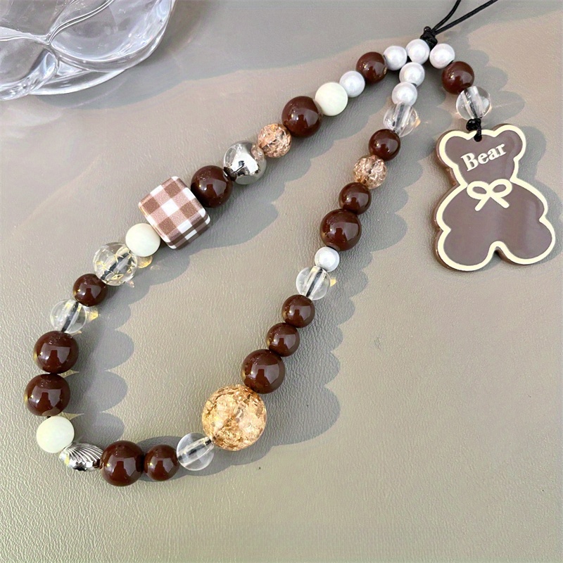 TEMU 귀여운 갈색 곰 비즈 폰 체인, 조개 비즈와 카메라 걸이 로프 - 아이폰과 삼성용 잃어버린 아크릴 래니어, 곰 장식이 있는 귀여운 액세서리 | 재미있는 디자인 | 아크릴 비즈, 귀여운 곰 폰 장식