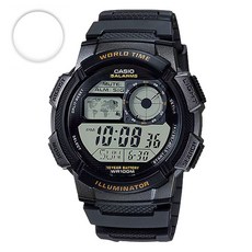 카시오 남성용 100m방수 디지털 손목시계 AE-1000W-1A + 액정필름 세트