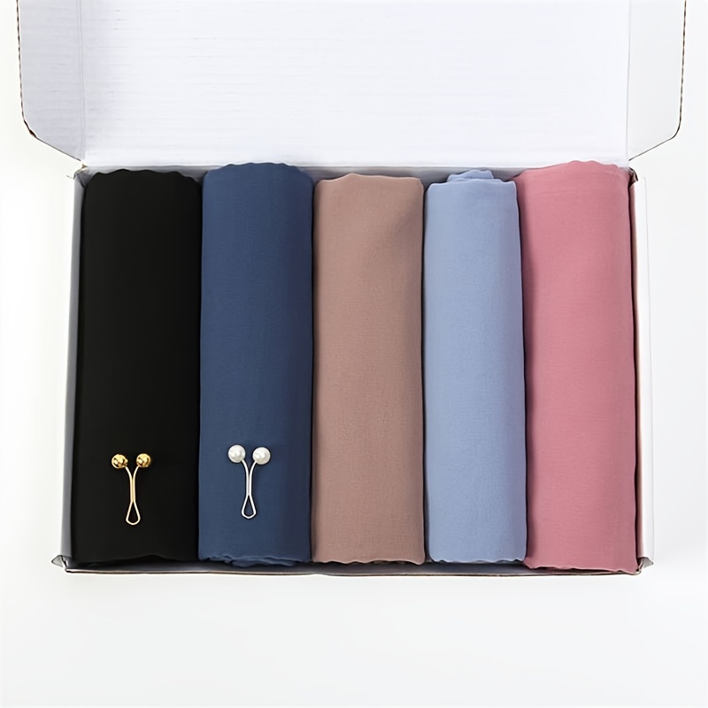 TEMU 여성용 단색 쉬폰 헤드스카프 세트 (헤드스카프 5개, 헤어 클립 2개 포함)