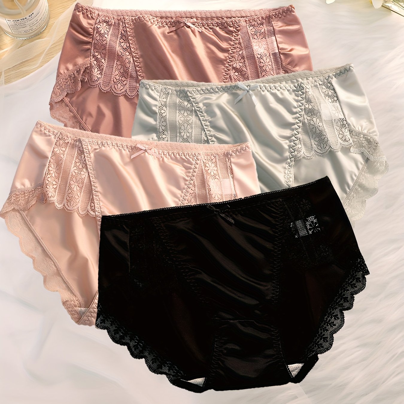 TEMU 4개 세트 여성용 레이스 시크한 통기성 얇은 팬티, 삼각형 모양의 리본이 달린