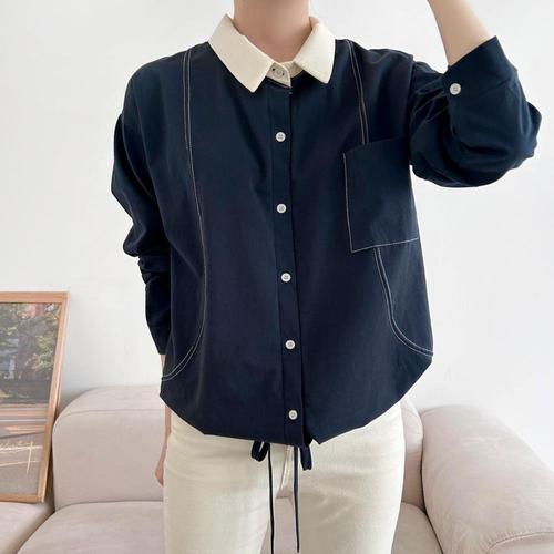 [미라클세븐]여성 스티치 컬러 배색 카라 포켓 스트링 면 셔츠