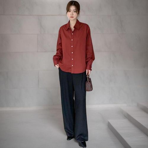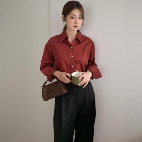 [미라클세븐]여성 심플 컬러 코튼 루즈핏 클래식 블라우스