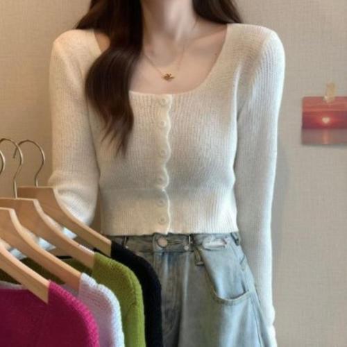 [미라클세븐]여성 비비드 컬러 크롭 긴팔 스퀘어넥 가디건