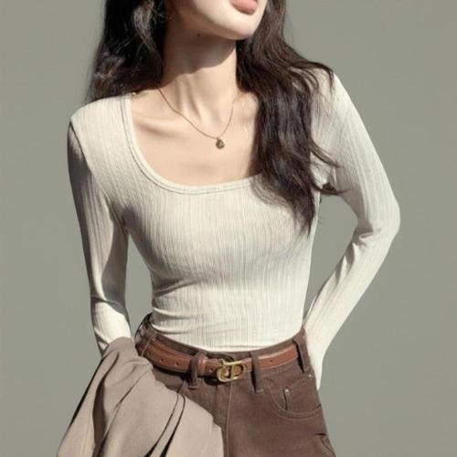 [미라클세븐]여성 기본컬러 골지 유넥 긴팔 티셔츠