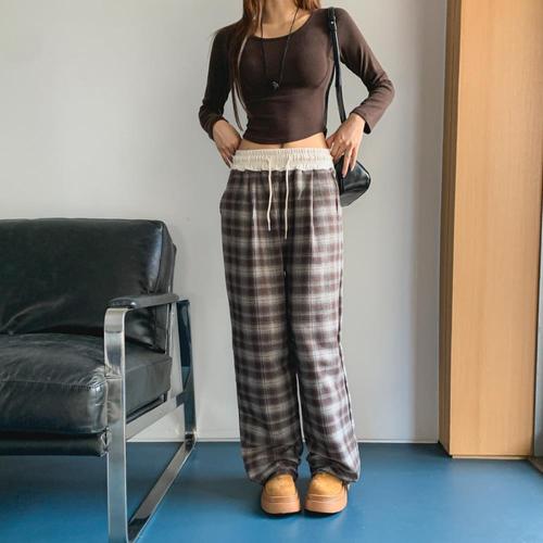 [미라클세븐]여성 심플 컬러 레이온 스판 유넥 크롭 긴팔 티셔츠