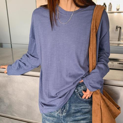 [미라클세븐]여성 심플한 코튼 무지컬러 박시핏 라운드넥 긴팔 티셔츠