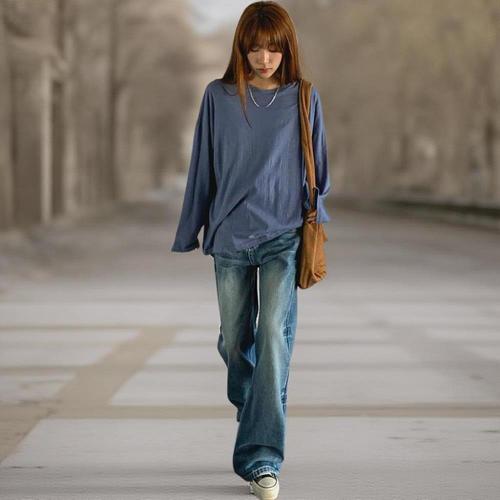 [미라클세븐]여성 나그랑 긴팔 기본 라운드 티셔츠 8컬러 루즈핏