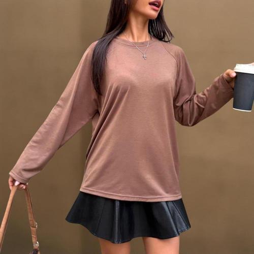 [미라클세븐]여성 기본 면 무지 컬러 루즈핏 라운드넥 긴팔 티셔츠