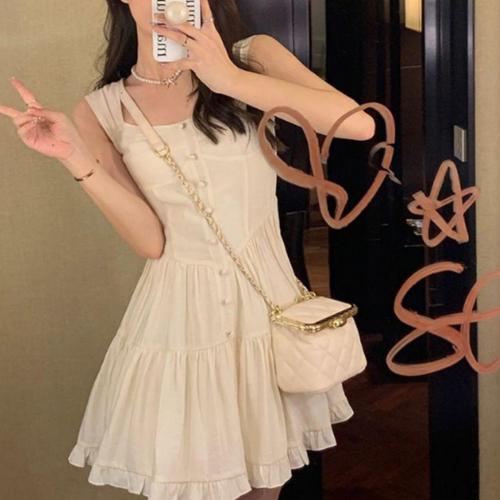 여성 썸머 린넨 민소매 핀턱 캉캉 프릴 미니 원피스