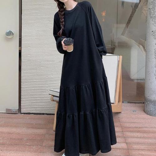 샵앤) 여성 라운드넥 2단캉캉 무지 러플 루즈핏 미디 원피스 CL-WOP0276