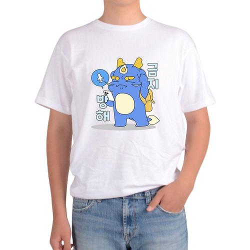 [에이치플러스몰]길단 반팔 USA핏 보드타는 용가리 눈감고 운동화신은 캐릭터그림 다양한색상 전사이즈