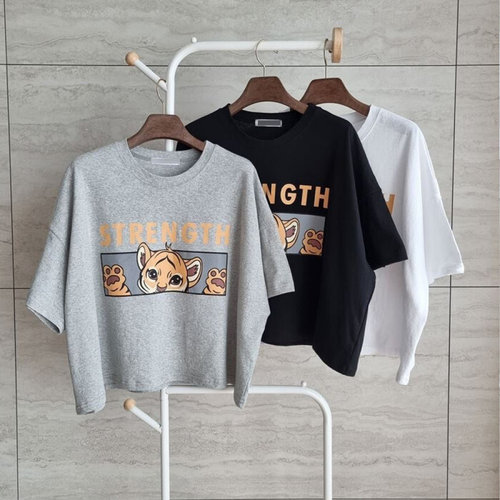 나야홍 / 빅사이즈반팔티 S449L506 라이언캐릭터나염크롭티 NS