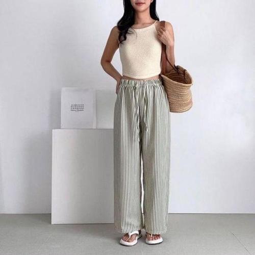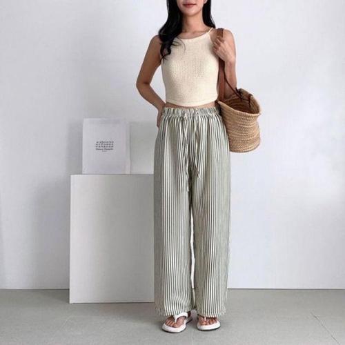 [셀러허브_여성트랜드패션]ONM 여성 바지 캐시스 지지미 심플 스트라이프 와이드