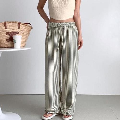 여성 바지 캐시스 지지미 심플 스트라이프 와이드바지