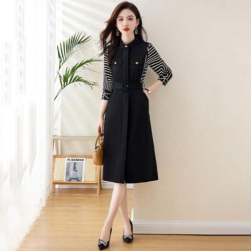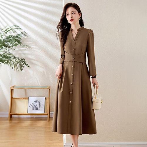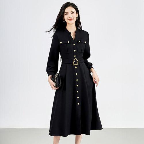 [헬리꽁땡](55~88)트렌치골드버튼원피스+벨트 캐주얼원피스 쉬폰원피스 엄마옷 임산부가을원피스 가을원..