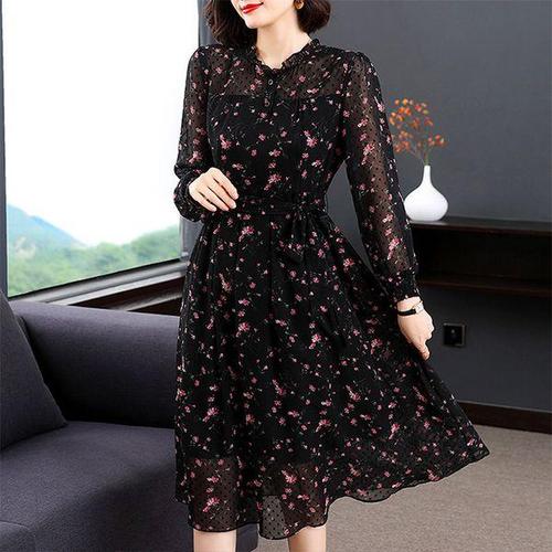 [기타브랜드]꽃무늬 원피스 드레스 여성 쉬폰 플로랄 프린트 캐주얼 스커트 우아한