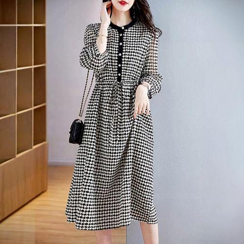 [헬리꽁땡](55~88)실키배색체크원피스 캐주얼원피스 쉬폰원피스 엄마옷 임산부가을원피스 가을원피스 간..