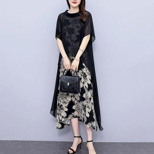 [헬리꽁땡](55~88)2종세트 쉬폰 베일레이어드원피스 캐주얼원피스 쉬폰원피스 엄마옷 임산부여름원피스 ..