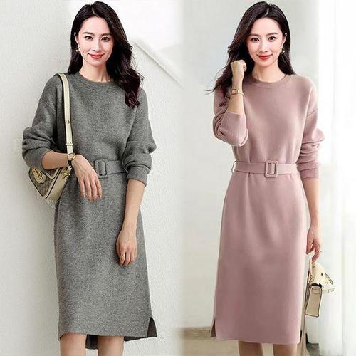 [헬리꽁땡](55~88)소프트엘렌니트원피스+벨트 캐주얼원피스 쉬폰원피스 엄마옷 임산부가을원피스 가을원..