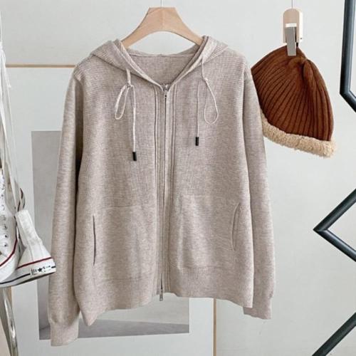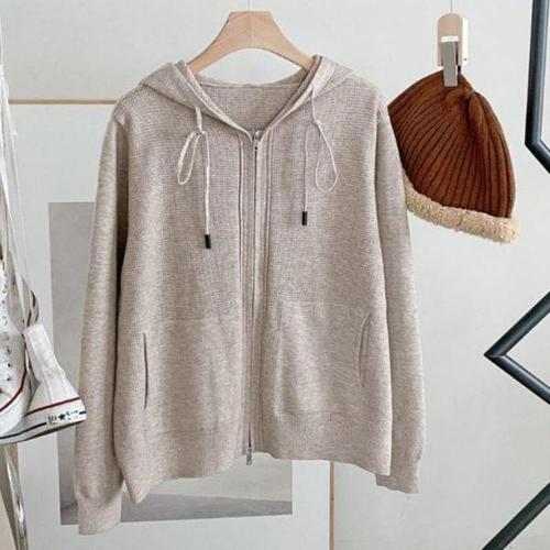 [옷자락]여성 캐주얼 니트 후드 스트링 루즈핏 집업 가디건