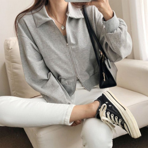|CMJ6769|여성 캐주얼 면혼합 절개 후드 크롭 집업
