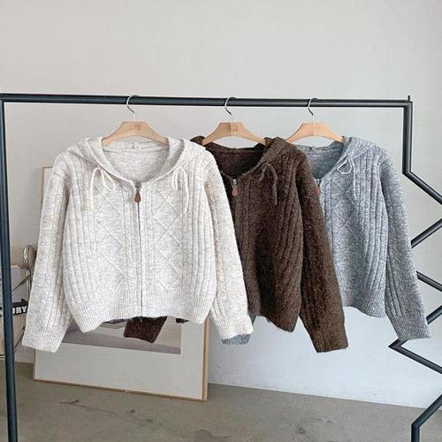 여성 캐주얼 꽈배기 후드 스트링 루즈핏 집업 가디건