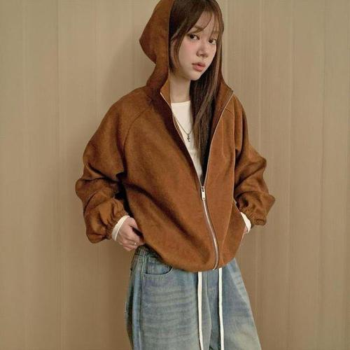 besteffie 후드집업 여성용 봄가을 후드 집업 맨투맨 캐주얼 루즈핏 지퍼 후드티 빅사이즈 E56