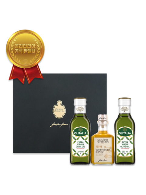 [올리타리아] [올리타리아 공식] 쥬세페크레모니니 화이트발사믹250ml 1병 + 엑스트라버진 올리브 오일250ml 2병 (선물세트)