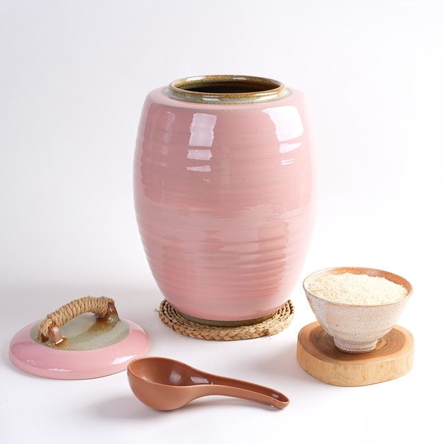 분청 핑크 무지 쌀독 10kg 쌀항아리 현관 소금항아리