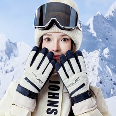 NY20 카드수납가능한 커플 스마트터치 방한 스키 보드 캠핑 장갑, 여성용 아이보리, 1개