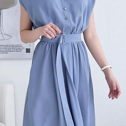 [에이치플러스몰]캡소매 허리밸트 원피스 DJJ3192