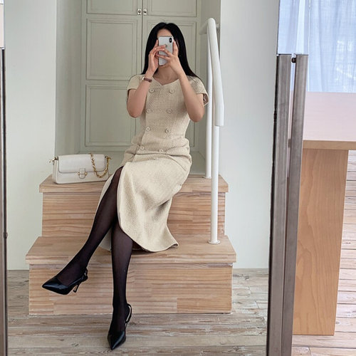 컴포트 슬림라인 캡소매 타이트 숏원피스룩