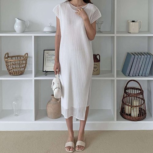소고 세이브존01 캡소매 주름 롱 원피스 ATK2PA18