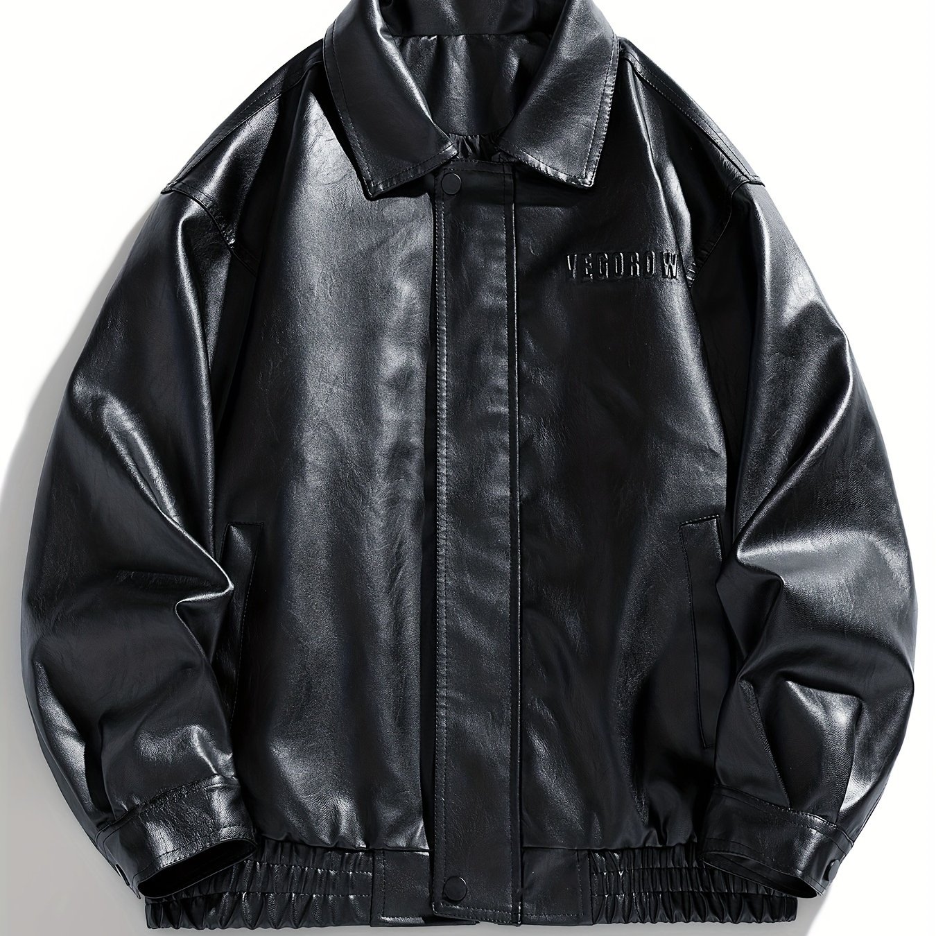 TEMU 남성 캐주얼 복고풍 PU 가죽 자켓, 세련된 지퍼 포켓 바이커 재킷