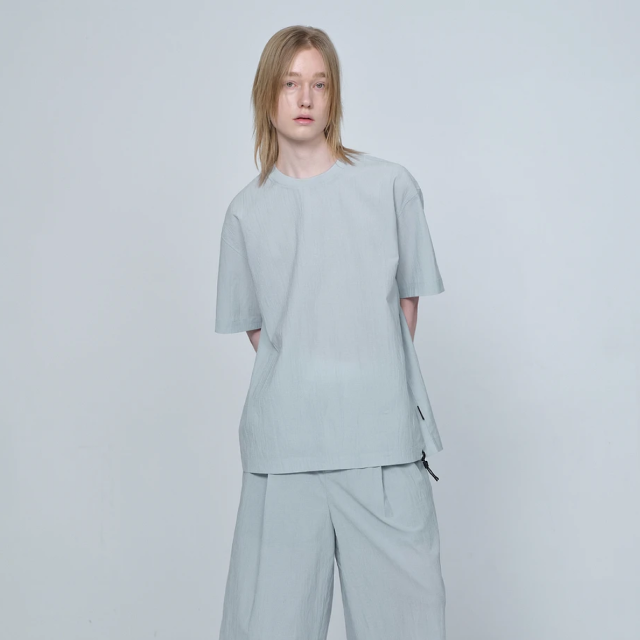 [커스텀멜로우]블랙 릴렉스드 핏 시어서커 셋업 자켓 CWJAM25422BKX