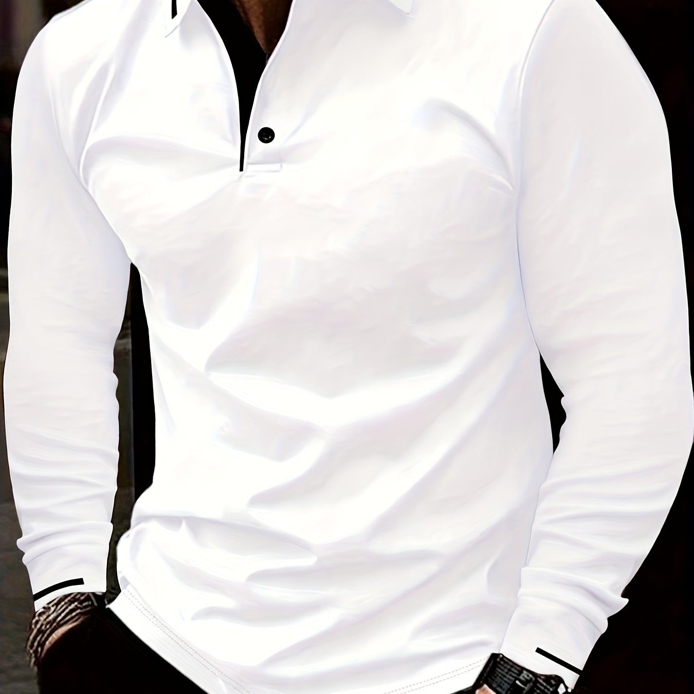 TEMU 남성용 캐주얼 롱 슬리브 셔츠 - 솔리드 컬러 버튼업, 대비되는 화이트 트림, 레귤러 핏, 기계 세탁 가능, 사계절 활용 가능한 일상 및 정장용 내구성 있는 블라우스