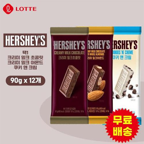 [롯데] 허쉬 크리미 밀크초콜릿, 밀크아몬드, 쿠키앤크림 (90gx12개)