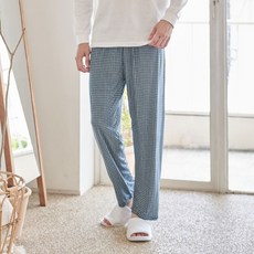 [민트위니]남녀공용 커플 체크오버팬츠 기모 홈웨어 통바지 밴딩