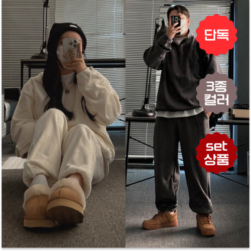 유인맨즈 / 유인 단독 남여공용(set상품) 포근한 기모 벨벳 커플 트레이닝세트_3컬러
