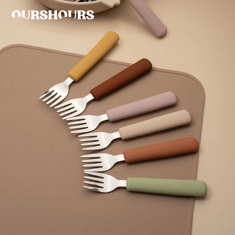 어린이 식기 스테인리스 포크 스푼 나이프 세트 실리콘 손잡이 유아용 식기 아기 액세서리