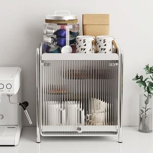 주방 조리대 정리함 (서랍 & 철망 바구니 포함) - 견고한 원목 금속 2단 수납 선반 (커피메이커, 조리기구