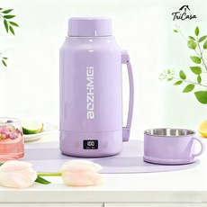휴대용 커피포트 보온보냉 전기포트 컵겸용 뚜껑 7단계 온도조절 터치 제어 실시온도 미끄럼 방지 디스플레이 텀블러1L, 퍼플