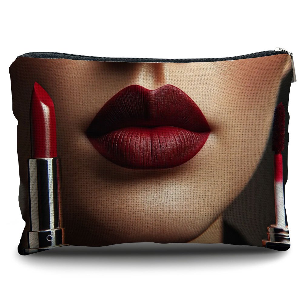 TEMU 1개 클래식 다크 레드 립스틱 디자인 여성용 리넨 메이크업 파우치 - 재사용 가능한 지퍼 화장품 케이스, 컴팩트 휴대용 립스틱 & 뷰티 필수품 정리함, 우아한 크리스마스, 새해 (그녀를 위한)|립스틱
