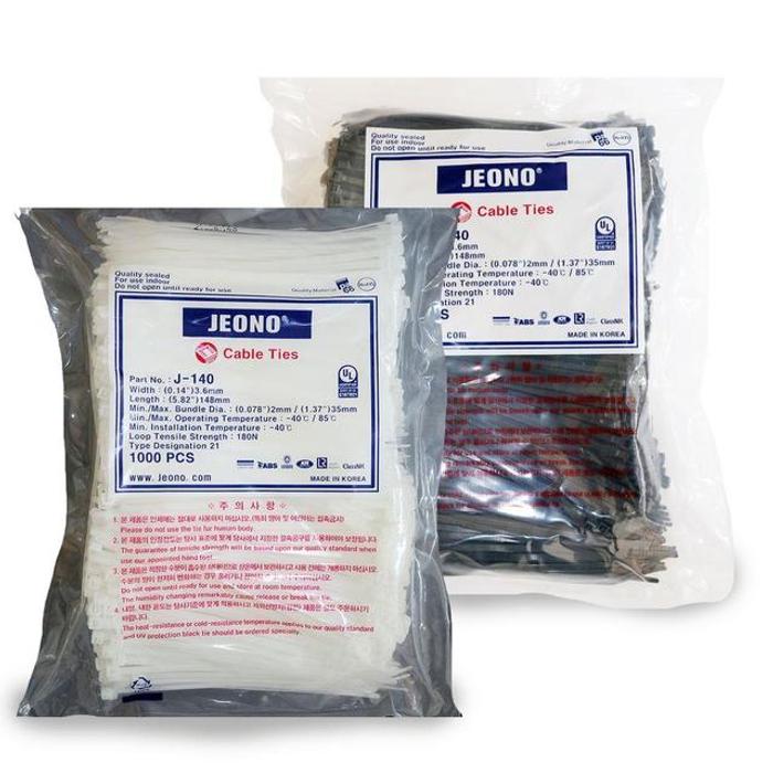 전오 국산 케이블타이 140mm 1봉 1000개입 흑색 백색 JEONO 전선관