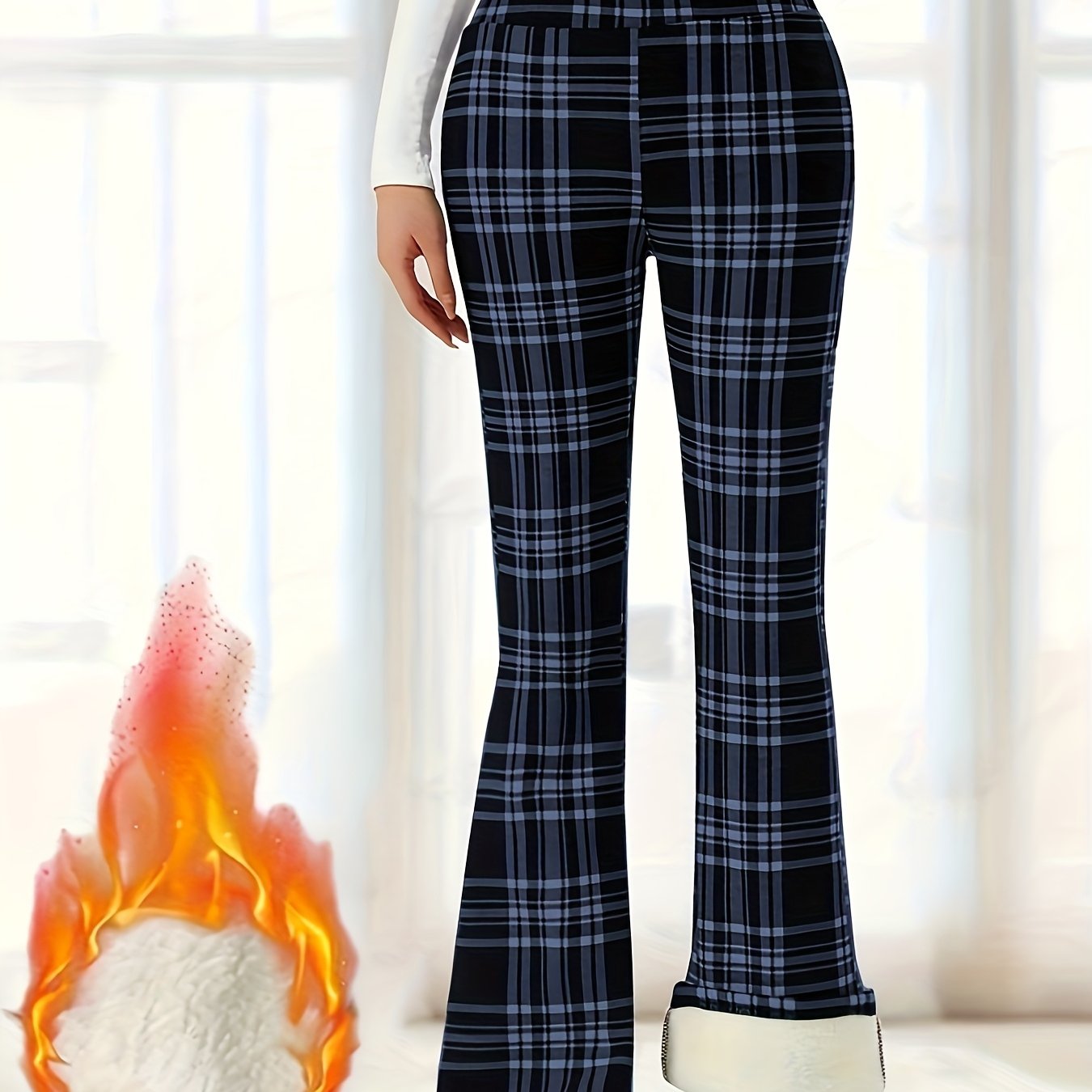 TEMU 여성용 하이웨이스트 겨울용 보온 벨바지 팬츠 - 신축성 있는 허리밴드, 긴 기장의 보온 와이드 팬츠, 추운 날씨용, 캐주얼 & 세미포멀 웨어, 솔리드 블랙, 헬스장, 트레이닝 & 일상용, 세탁기 사용 가능