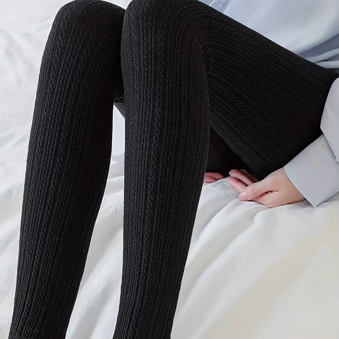 TEMU 여성용 하이웨이스트 슬림핏 발목 팬티스타킹 - 플러시 플리스 안감, 레깅스 & 스커트용 따뜻한 겨울용 탄력 있는 솔리드 컬러 타이츠, 내구성 있는 편안함, 고급스러운 디자인, 무봉제, 부드러운 질감, 캐주얼 착용, 패션 애호가를 위한 스타일리시한 하이웨이스트 팬츠